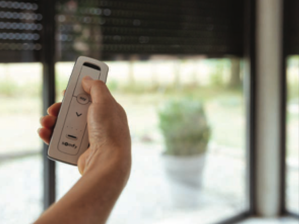 Version motorisée à commande déportée, permettant de piloter plusieurs stores simultanément et de gérer avec précision l’inclinaison des lames via une commande à distance.